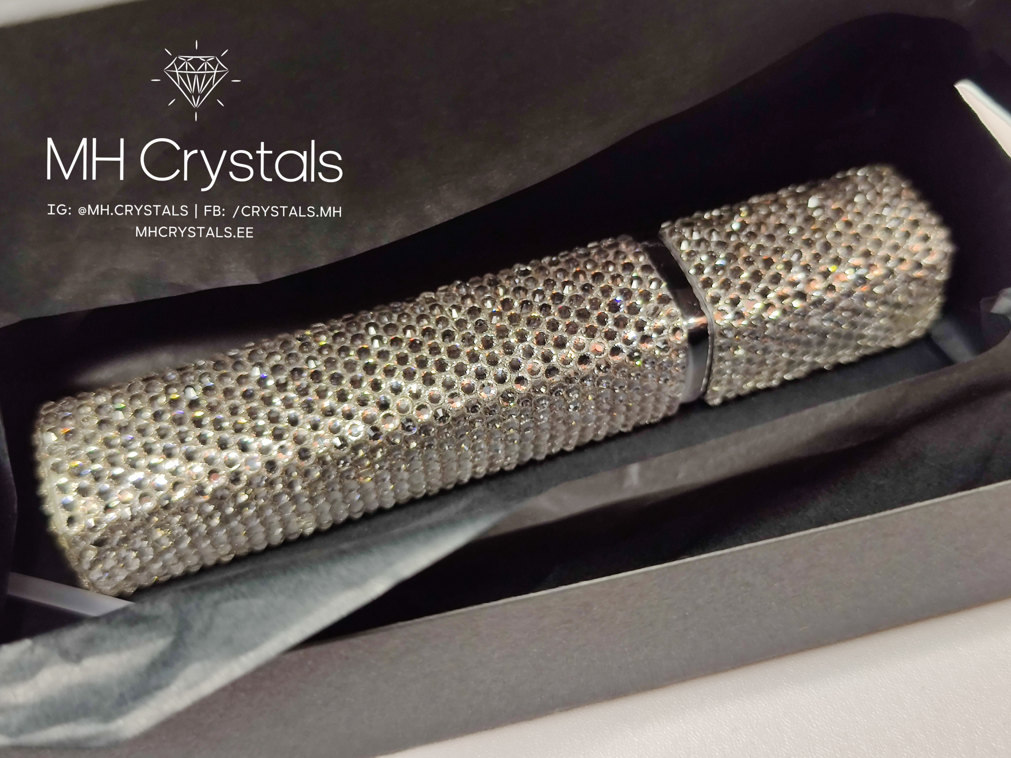 Pudeli alumiiniumist ümris on täielikult kaetud kõrgekvaliteediliste kristallidega, iga kristall paigaldatud käsitsi, üks haaval.