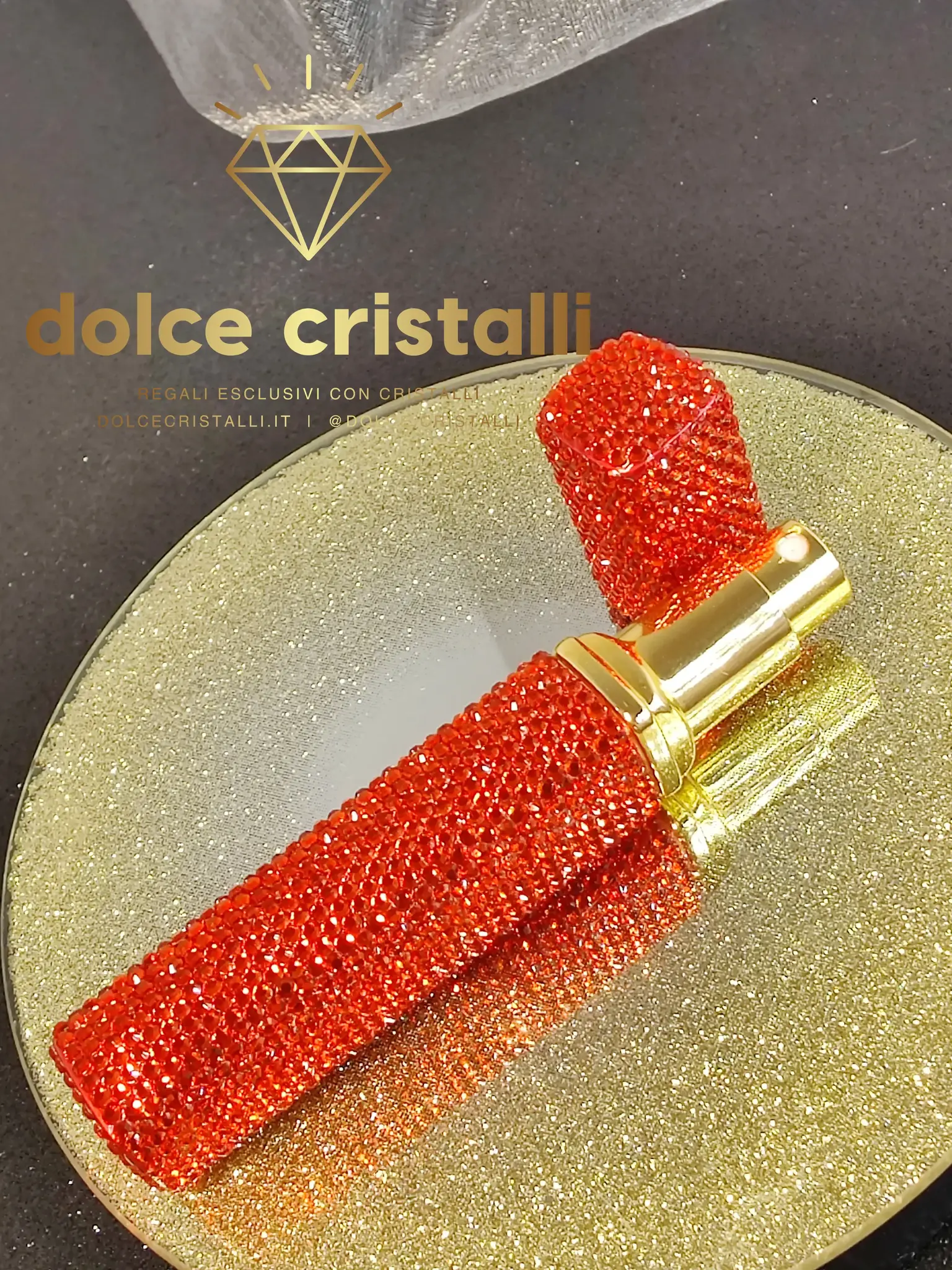 Un flacone di profumo molto esclusivo, ricaricabile.Il flacone spray ricaricabile è realizzato in vetro e può contenere 12 ml del vostro profumo preferito.È molto comodo da portare con sé ogni giorno, sia in borsa che in tasca.Perfetto da portare in viaggio. Il flacone di vetro si estrae dalla custodia e occupa poco spazio nella borsa dei liquidi quando si viaggia con il bagaglio a mano.Il corpo del flacone di profumo è completamente ricoperto di cristalli di alta qualità. Ogni cristallo è installato a mano, uno per uno.Una bottiglia di profumo molto elegante, esclusiva e unica, realizzata a mano.